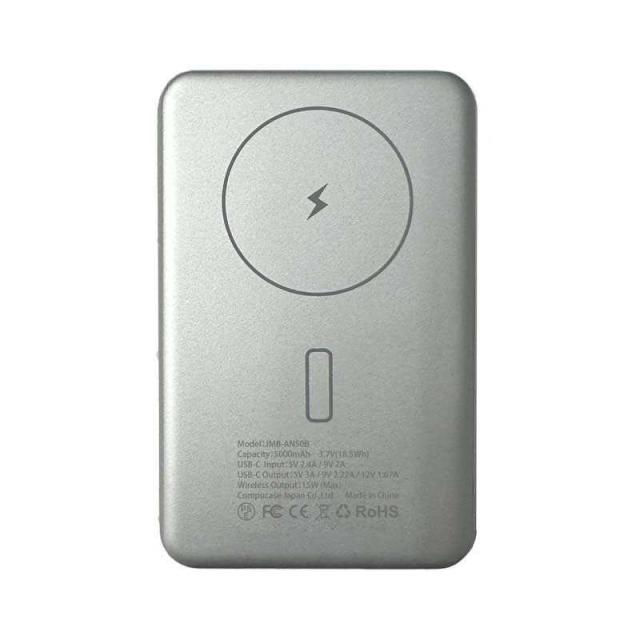 コンピューケースジャパン アルミ製(PD20W) agreen 超薄型マグセーフ5000mAhモバイルバッテリーシルバー JMB-AN50B-SV