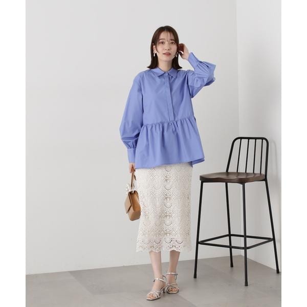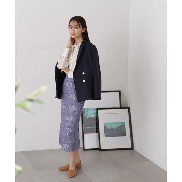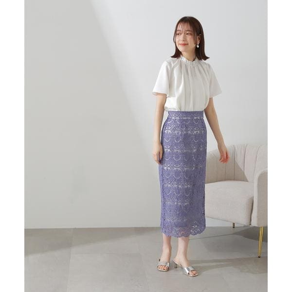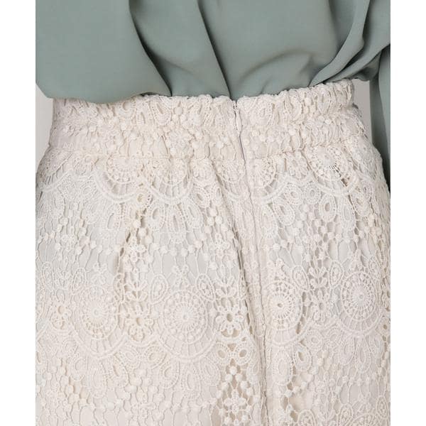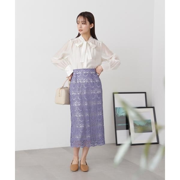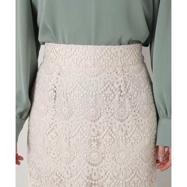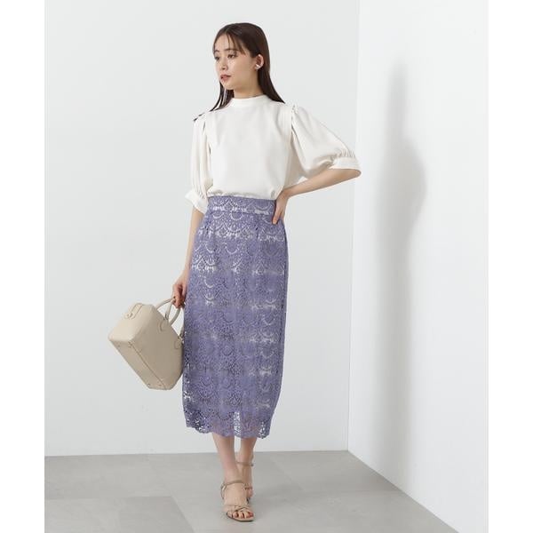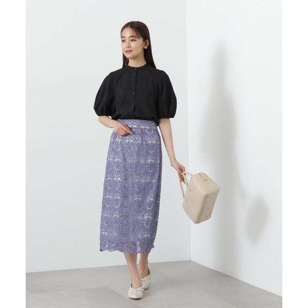 品格漂うケミカルレースで仕立てたスカートは、すっきりとしたシルエットを演出し、大人の女性にぴったりな一枚。裾はバックスリット入りと、ケミカルレースに合わせたヘムラインのカッティングで、足元を軽快に見せてくれます。ウエストの後ろはファスナーとゴム仕様なので、インした時におさまり良くフィットします。落ち感のあるキレイめブラウス、華やかなブラウスやシンプルニットプルオーバーも合わせやすく、通勤オフィススタイルや会食等のきちんと感が必要なシーンにも活躍できます。