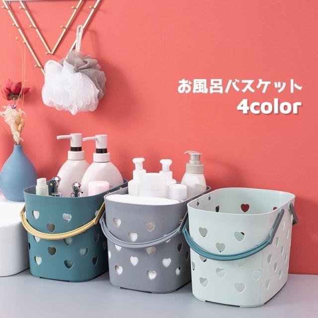 お風呂バスケット かご カゴ 浴槽 手提げ 持ち手 小物収納 小物入れ ハート 温泉 スパ ジム 洗面 シンプル かわいい