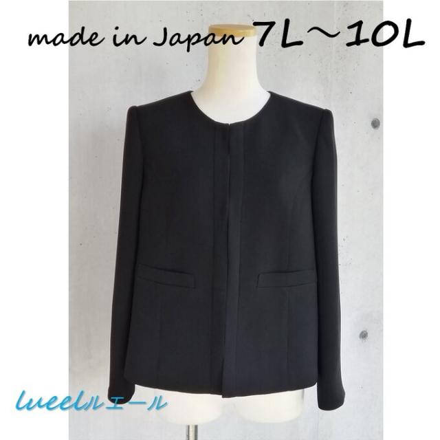 喪服 ブラックフォーマル 黒礼服 ノーカラー身頃ゆったりジャケット 【7L~10L】 115500-3