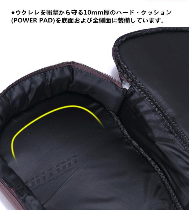 ■ウクレレを衝撃から守る10mm厚のハードクッション(POWER PAD)を底面および全側面に装備しています。
