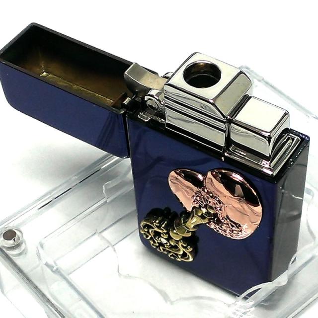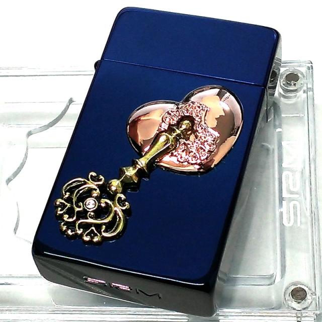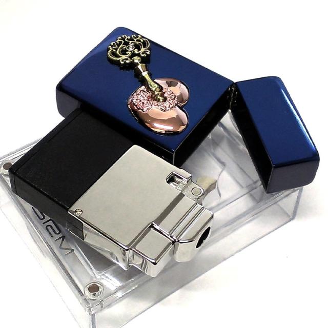 サロメ ガスライター 訳あり特価 かわいい SAROME オープンハート メタル ブルー チタンコーティング ターボ