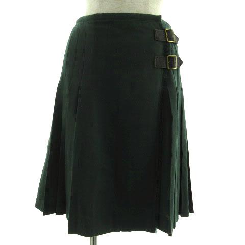 【中古】マカフィー MACPHEE スカート ラップ フリンジ プリーツ 台形 ひざ丈 ベルト 日本製 ウール グリーン 緑 34