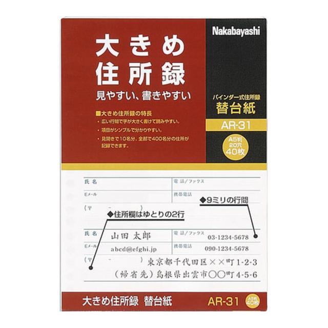 【メール便発送】ナカバヤシ 大きめ住所録 A5 替台紙 (A-31用) AR-31