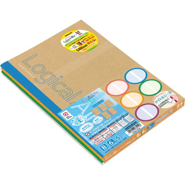 【メール便発送】ナカバヤシ ロジカルエアーノート セミB5 クラフトカラー B罫 5冊パック NLB501B-5P