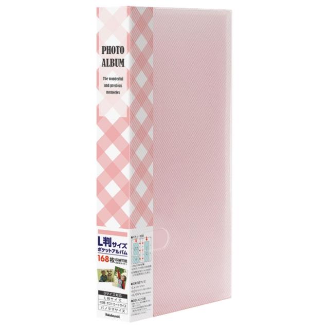 ナカバヤシ フォトホルダー L判3段168枚 チェック ピンク PHE1168A-P 【北海道・沖縄・離島配送不可】