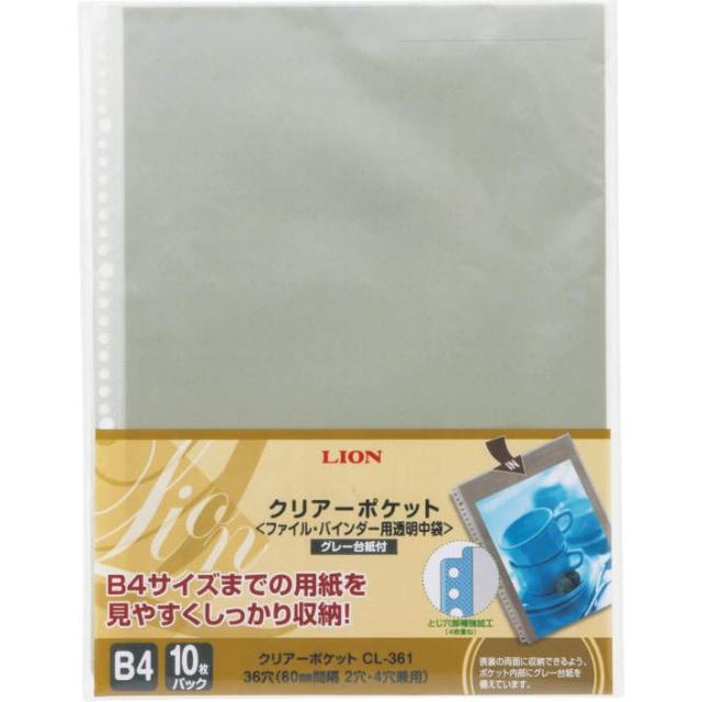 (まとめ買い)ライオン事務器 クリアーポケット B4タテ 2・4・36穴 10枚入 CL-361 B4 147-40 〔×3〕 【北海道・沖縄・離島配送不可】