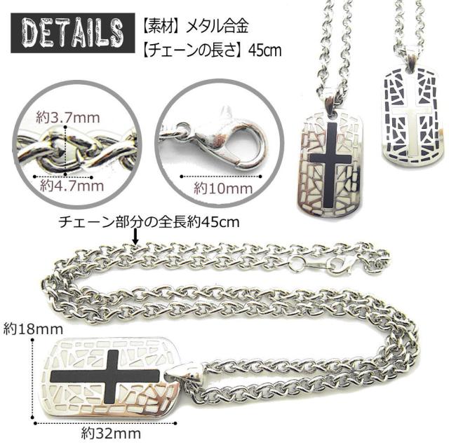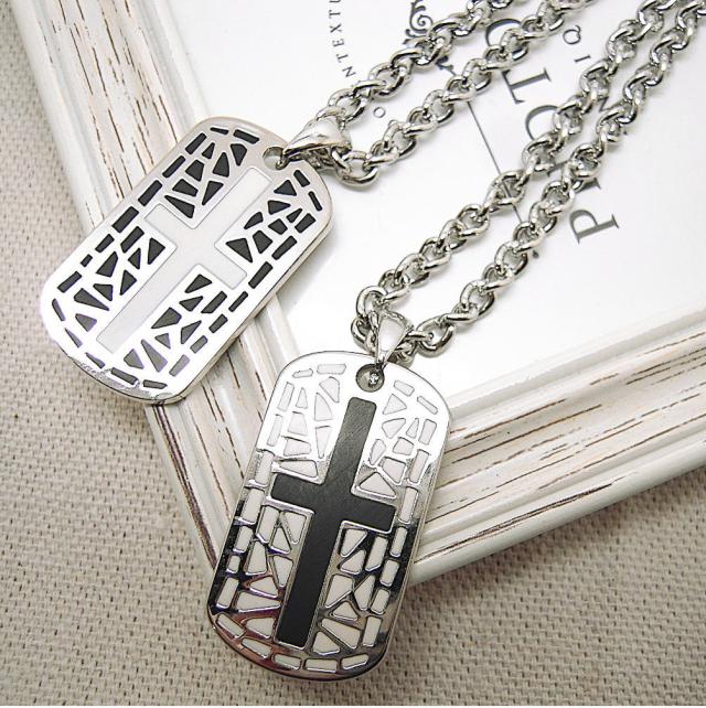 ペンダント ネックレス クロス 十字架 ステンドグラス風 プレート タグ トップ チェーン 小豆 あずき チェーン 45cm ペアアクセサリー に オススメ 4-7604