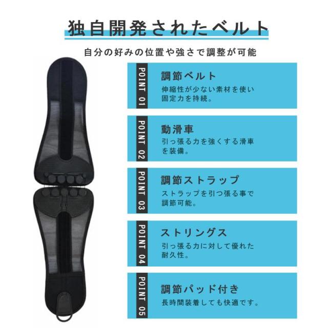 ●フロントベルトとサイドとバックからのベルトフィットシステムを採用しており、あなたの最適なサポート力に調整することができます。