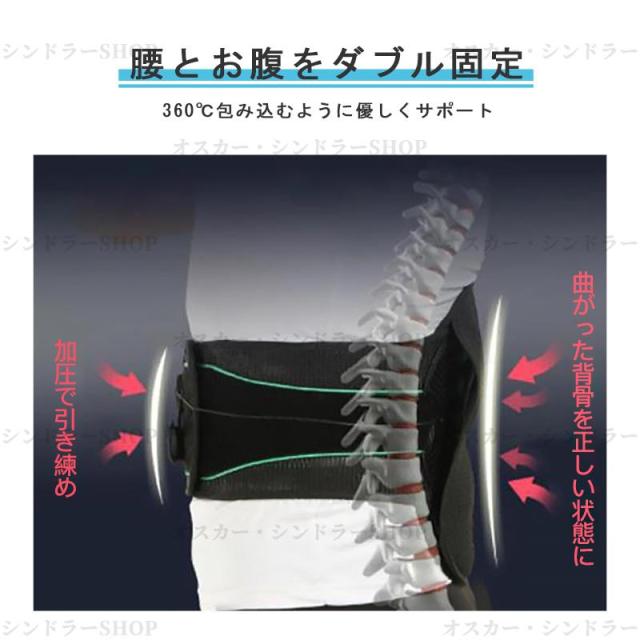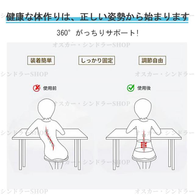 ●お腹部分のサポーター圧により姿勢を整えて、腰の負担を分散します。長時間の座り仕事や車の運転、老化や肥満、腰痛によって腰に不安をお持ちの方におすすめです。