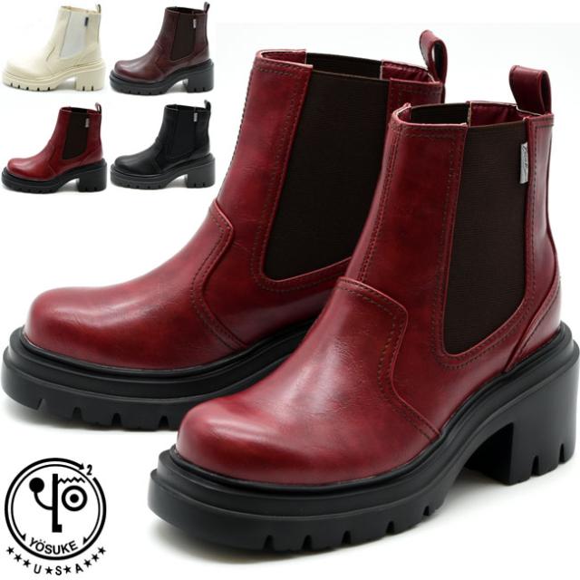 ヨースケ YOSUKE サイドゴアブーツ 厚底ブーツ ショートブーツ レディース ブラック 黒 S-LL 全4色 6310010