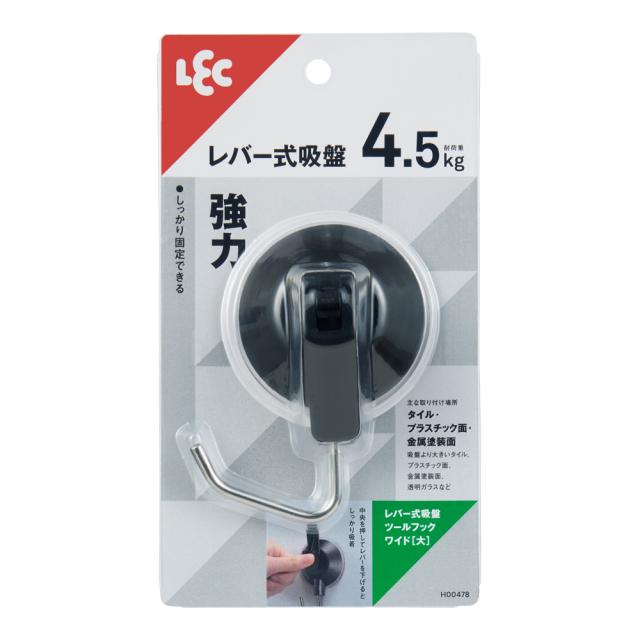レバー式吸盤ツールフックワイド (大) ブラック H00478 レック [フック 吸盤 吸盤フック 収納 日用品 インテリア]