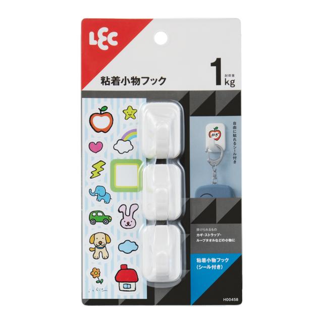 粘着小物フック シール付き 3個入 H00458 レック [フック 粘着 粘着フック 収納 日用品 インテリア]