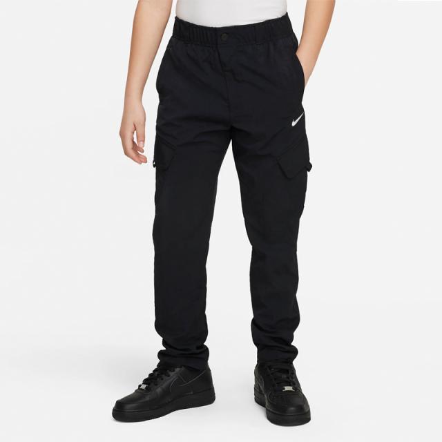 ナイキ キッズ カーゴパンツ ウィンドブレーカー NIKE アウトドア プレー ジュニア ウーブン ロングパンツ 130cm 140cm 150cm 160cm キッズウェア 子供服 長ズボン ずぼん ボトムス 黒 スポーティ ウェア 春夏 ブランド アパレル/FD3239-010