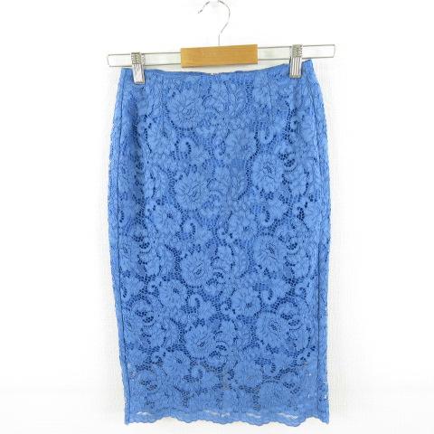 【中古】ジーユー GU ひざ丈レーススカート タイト 青 S *A633 レディース