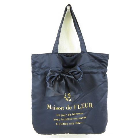 【中古】メゾンドフルール Maison de FLEUR リボンギャザートートバッグ プリント 紺 F *A638 レディース