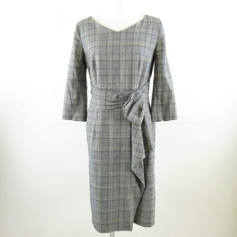 【中古】ジャスグリッティー JUSGLITTY ひざ丈ワンピース 七分袖 チェック グレー 2 *A617 レディース