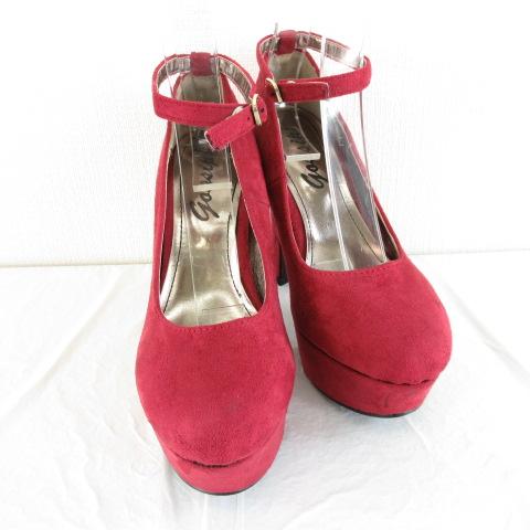 【中古】ゴシップ gossip パンプス フェイクスエード ストラップ チャンキーヒール12?p ボルドー L *A384 レディース