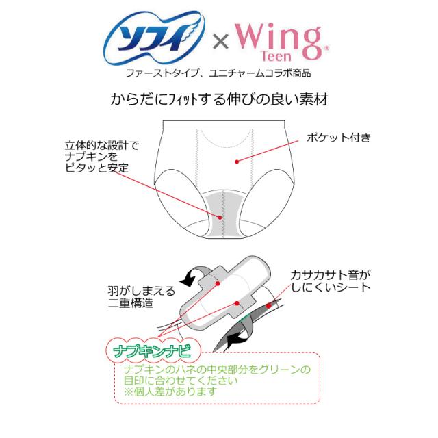 15%OFF ウイング ティーン Wing Teen ジュニアサニタリーショーツ ファーストタイプ ユニチャームコラボ商品 ナプキンナビ仕様 (2S・S・M・Lサイズ)RJ6340