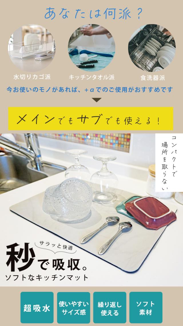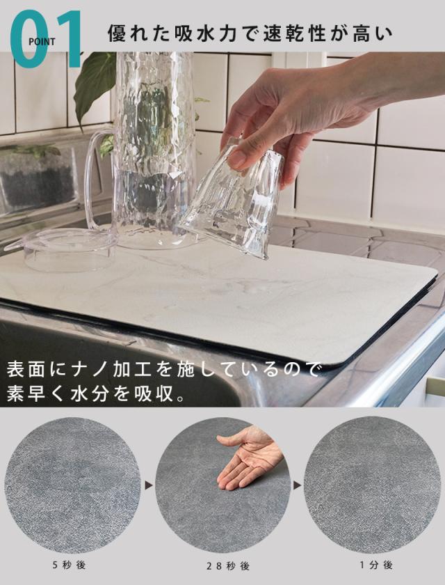 水切りマット キッチン 吸水マット ドライングマット 吸水速乾 瞬間 洗える 瞬間吸水 食器乾燥 おしゃれ バスマット シンク ソフト 軽量 30×40cm ネコポス便