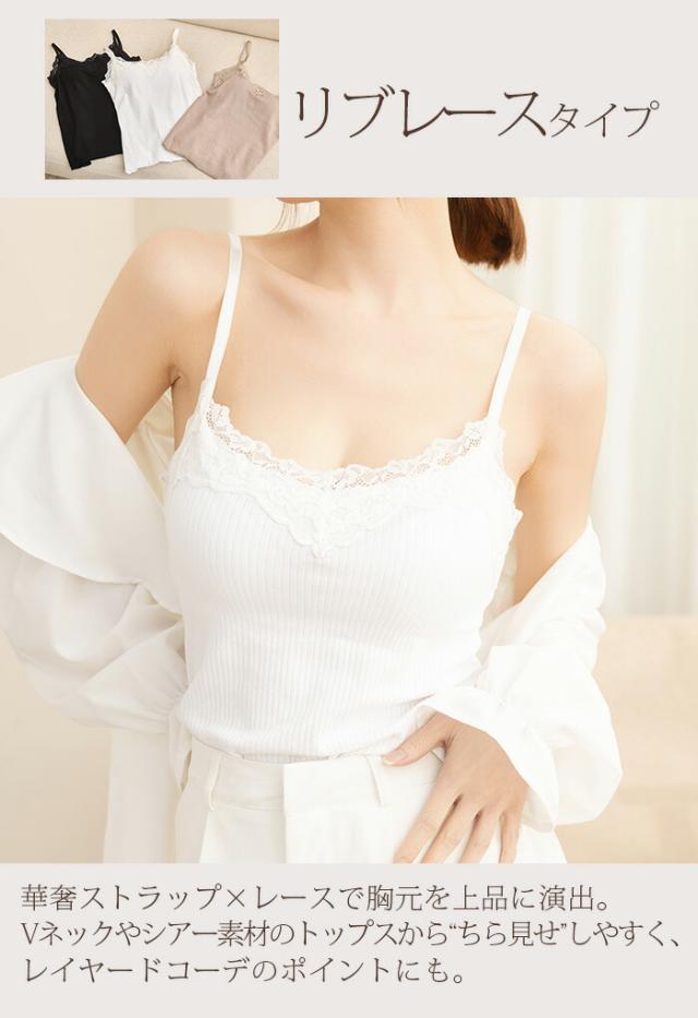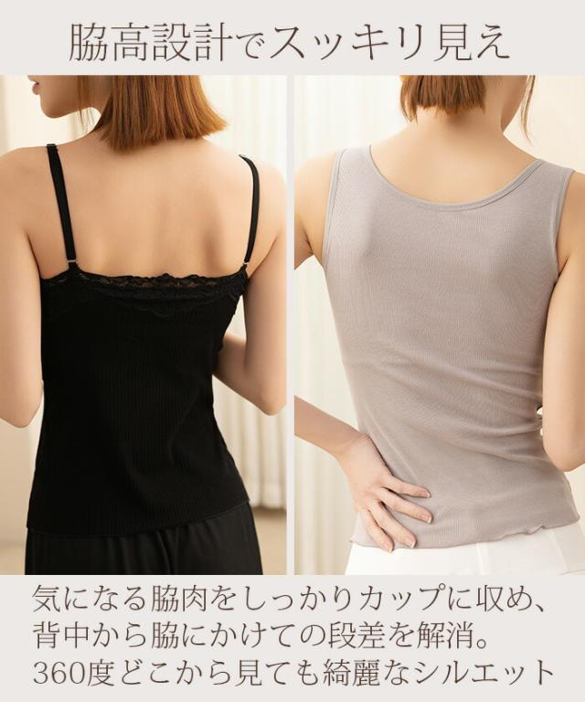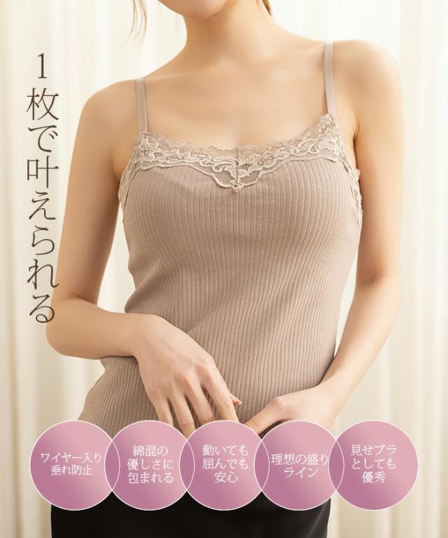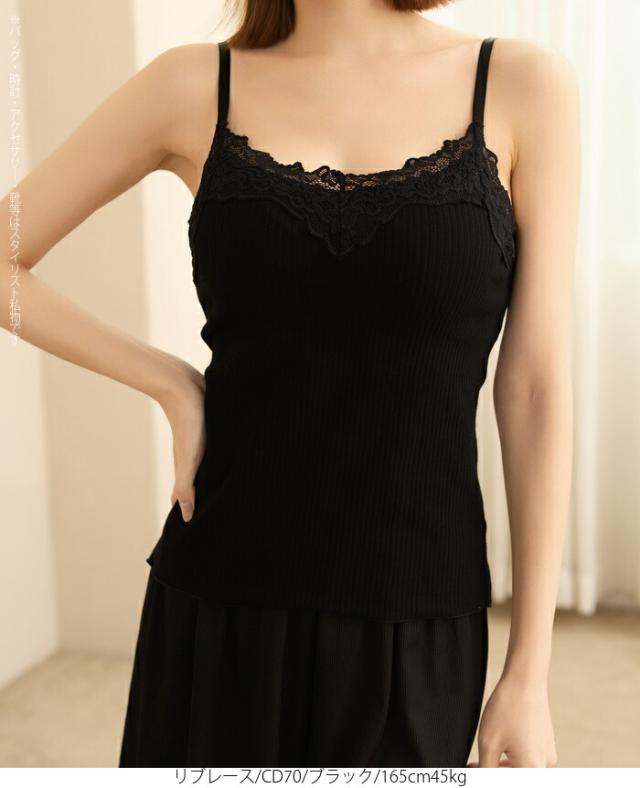 33%OFFクーポン!カップ付きキャミソール キャミソール キャミ カップ付き ナロース レース カップ リブ リブキャミ 締め付けない 春 インナー シアートップスのインナー【 カップ付きリブレースキャミソール 】ダークエンジェル 夏の新作