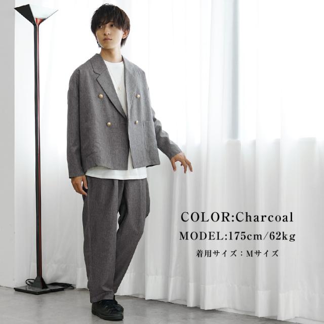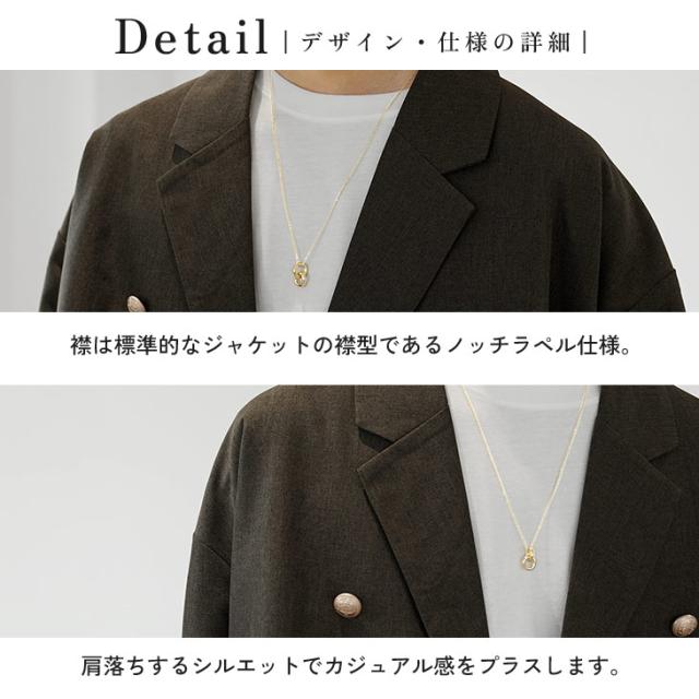 スーツのジャケットにはない肩落ちのゆったりとしたシルエットが特徴的なダブルのテーラードジャケット。ラクに着用できるのに、きっちりとした印象を与えるアイテムです。ミックス調の独特な風合いを持ち、シンプルなTシャツやシャツと合わせるだけでコーデが完成します。