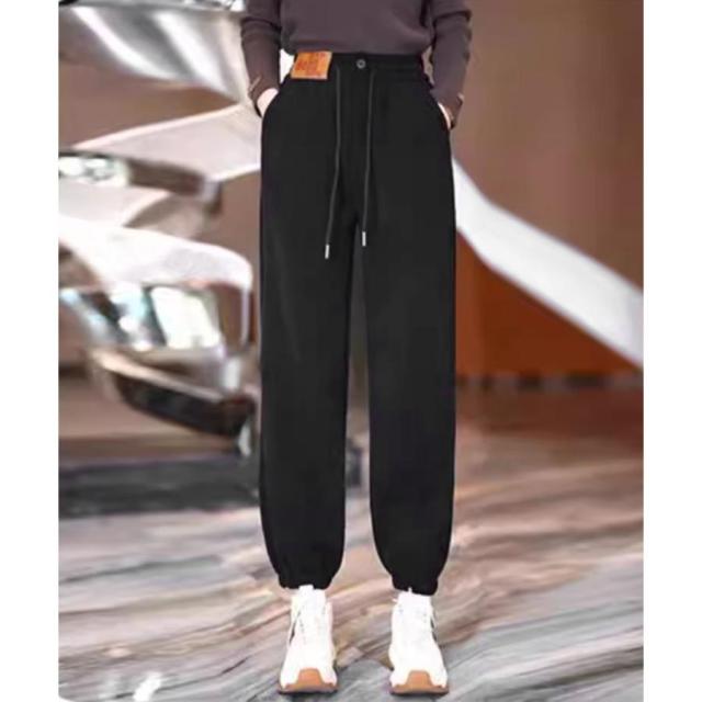 暖かい 裏起毛パンツ ウエストゴム 防風防寒 ハイウエスト裏ボアパンツ 裾ゴム ジョガーパンツ イージーパンツ あったか