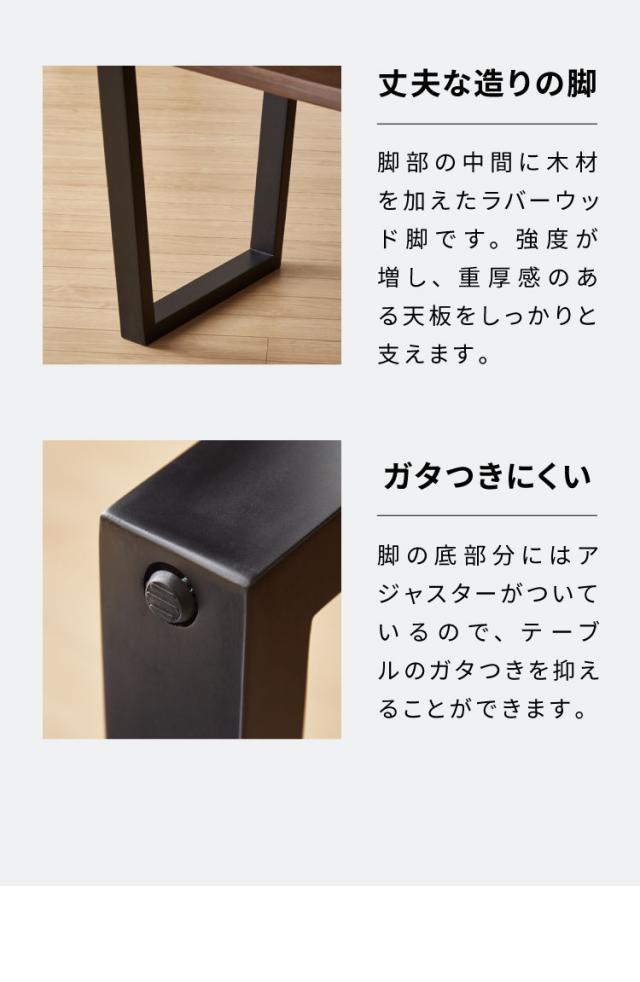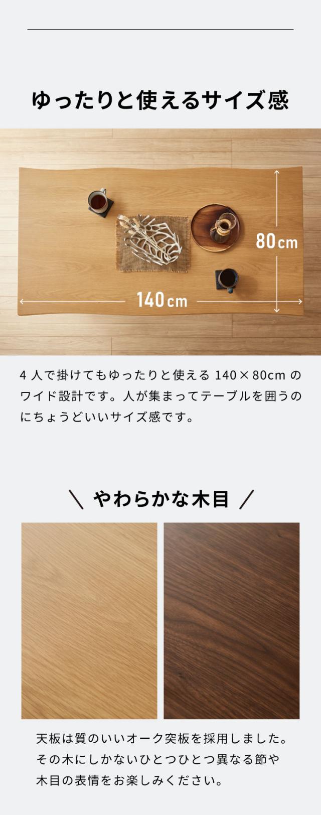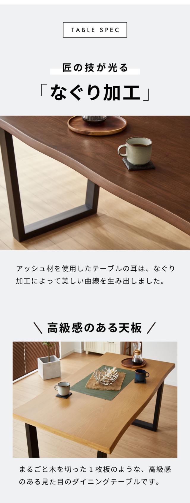 なぐり加工 台形脚 天然木ダイニングテーブル 140