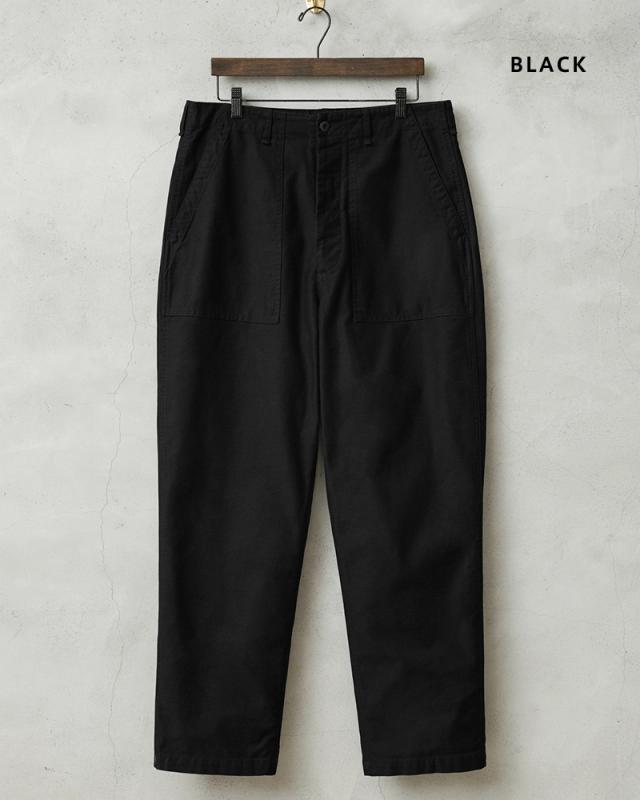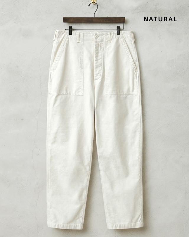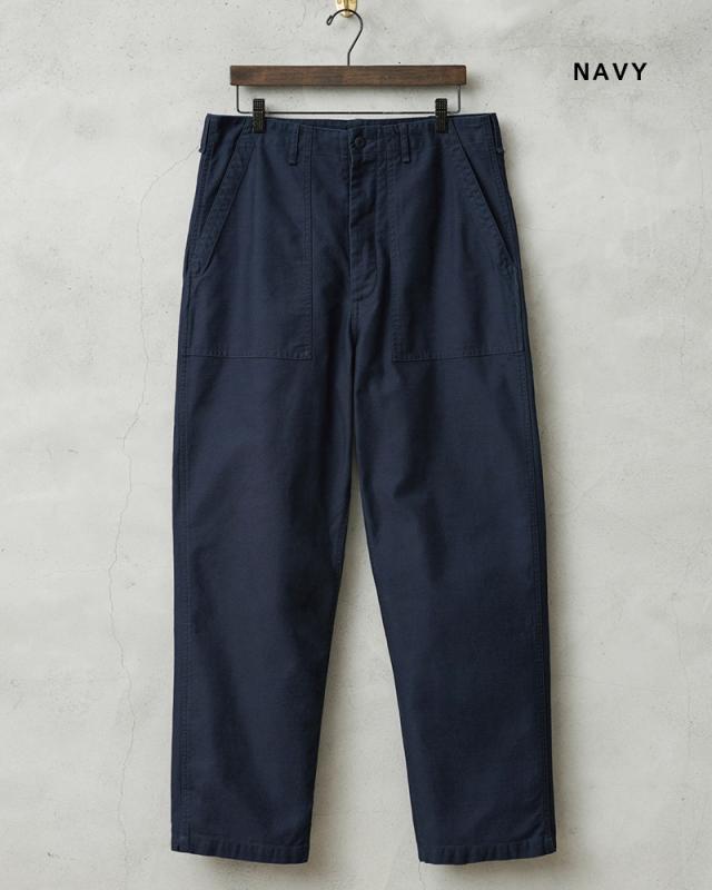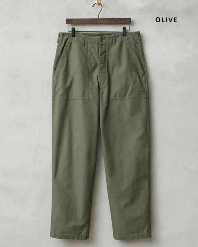 | 商品説明 | WAIPER.inc 米軍 OG-107 ユーティリティパンツ のご紹介です。 品名:TROUSERS,MAN’S COTTON SATEEN OG-107,TYPE 1 品番:WP1028 米軍の名作パンツであるOG-107ユーティリティパンツ。ベイカーパンツやファティーグパンツという通称でもおなじみです。 コットンサテンを使用したシンプルなボトムスは、ユーティリティという名前の通り万能パンツとしてカジュアルなパンツの代表格として広く親しまれています。 今回、WAIPER.incで製作したものは最も広く認知されている60年代後期の物。 UFOボタンやポケットのWステッチなど特徴も再現しつつ、パッカリングも期待できる脇のダブルステッチやムラ糸のコットンサテンは履きこむほど風合いが増す素材となっています。 若干、テーパードしたシルエットはジャストサイズからオーバーサイズまで好みでお選びいただけます。カラーは定番のOLIVEに、NAVY、BLACK、NATURALを加えた4色展開となっていますので、必ずお気に入りの色サイズが見つかるはず。 なにかと使える万能ボトムスとしてワードローブに加えていただきたいおすすめの一品です。 | ||||||||||||||||||||||||||||||||||||||||||