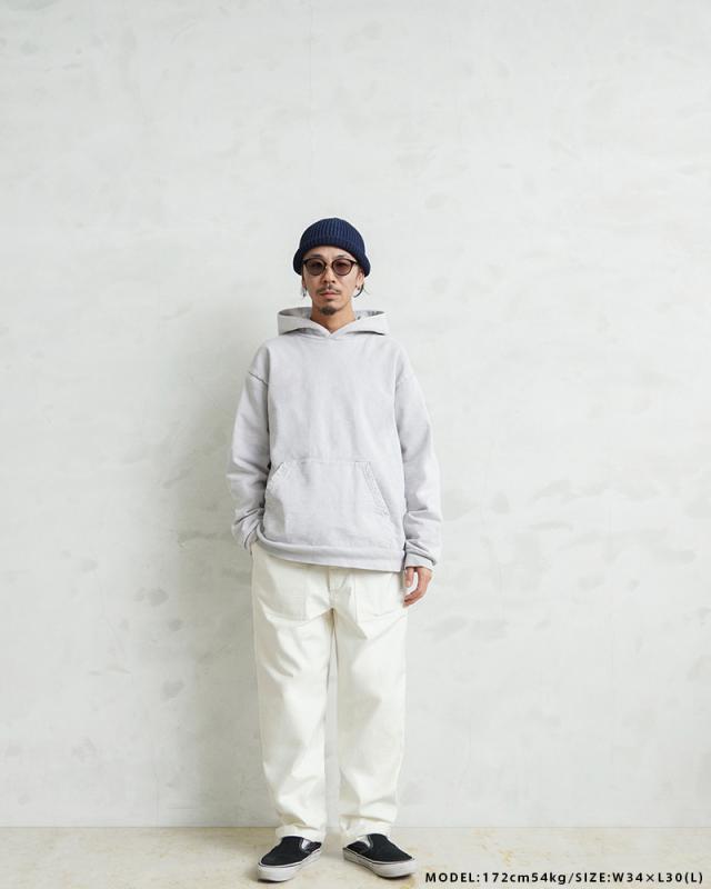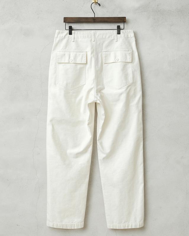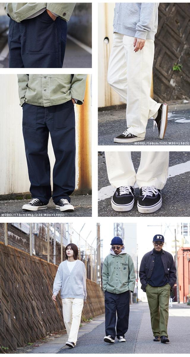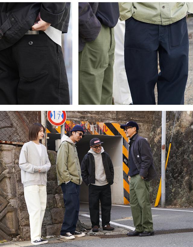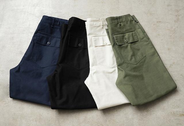 コットンサテンを使用したシンプルなボトムスは、ユーティリティという名前の通り万能パンツとしてカジュアルなパンツの代表格として広く親しまれています。