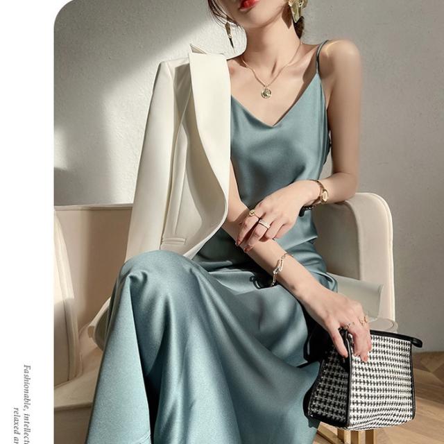 OP354 フレア ロング ワンピース スカート サテン 光沢 ワンピ ドレス ワンピ スリット ロングワンピ シンプル 無地 結婚式 二次会