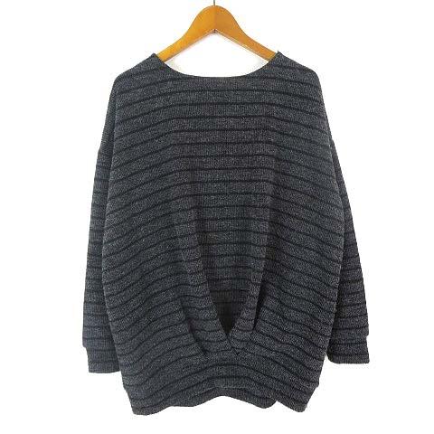 【中古】グラシア GLACIER ニット セーター ボーダー ドレープ タック ギャザー ドロップ 長袖 M チャコールグレー 黒