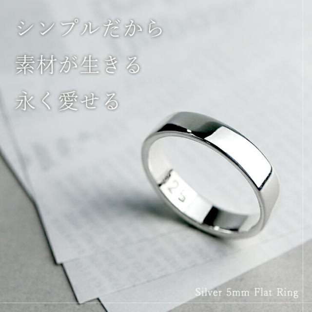 シルバー リング シンプル 指輪 アクセサリー 5mm幅 プレーン平打ち 平打ちリング 7〜29号 メッセージ刻印 名入れ可 メンズ レディース 男性 女性