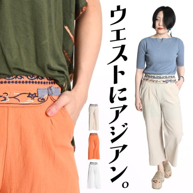 ストレートパンツ レディース 春 夏 チャイナ ストレート パンツ ワイドパンツ 刺繍 無地 個性的 綿 麻 rp60906