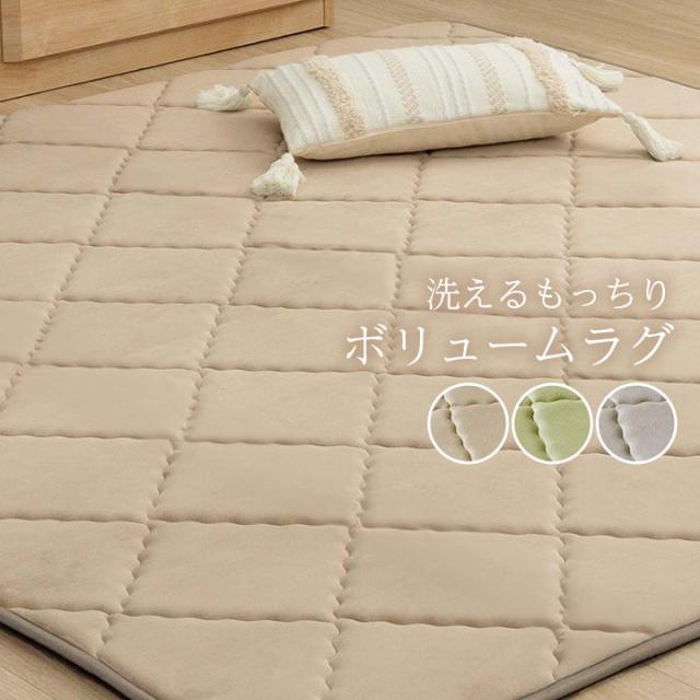 グランドライト ラグ 滑りにくい 防音 ボリューム 厚い 洗える 手洗い 乾きやすい もっちり 無地 約185×185cm 約2畳 床暖房 ホットカーペット対応 こたつ敷布団