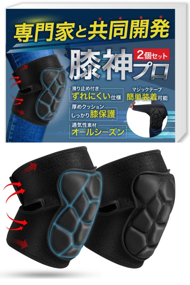 【理学療法士監修・両膝セット】【膝神プロ】ひざ当て 膝あて 膝パッド サポーター 作業用 室内作業 スポーツ 農作業 建設 掃除 整理整頓 DIY 園芸 軽量 伸縮性 耐久性 男女兼用 高齢者 膝当て ひざあて 防具 プロテクター ランニング 装着簡単