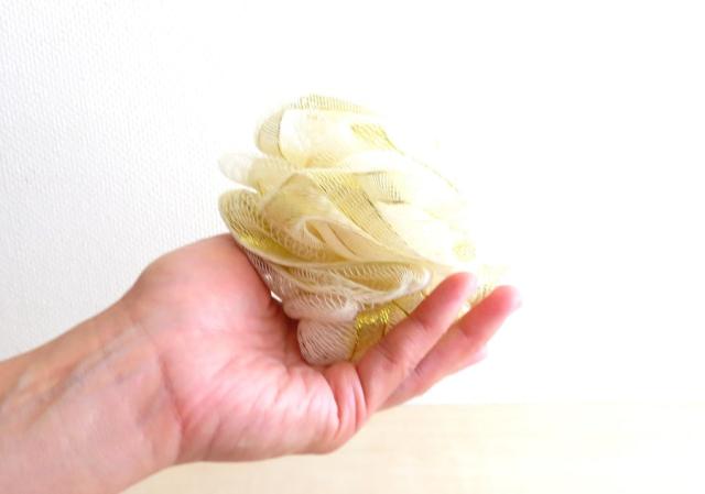 紐付きで使いやすい片手サイズのスポンジ。お湯を含ませ、石けんやボディーソープをクシュクシュと泡立てやすい。 |