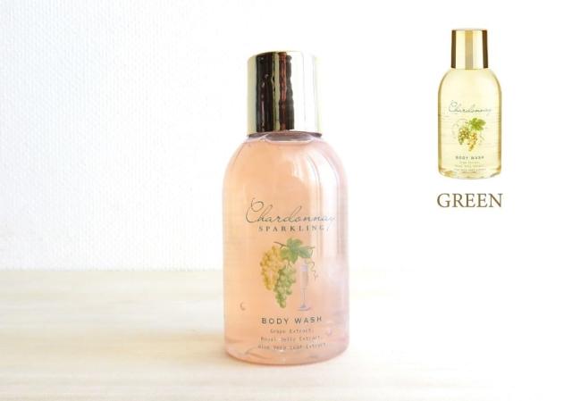 シックで大人の装い、白ぶどう果汁があふれだすような、みずみずしいシャルドネの爽やかな香りが織りなす「グリーン」、淡く優しさを感じる可愛らしい装い、樽の香りを思わせる芳醇で軽やかなシャンパンの香りが織りなす「スパークリング」の2種類。