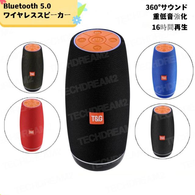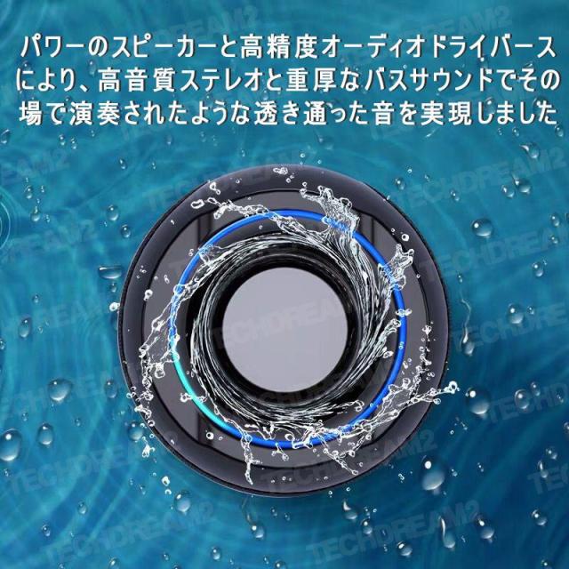 Bluetooth 5.0 ワイヤレススピーカー 360°サウンド 重低音強化 5W大出力 IPX7完全防水 USB-C急速充電 インドア・アウトドアサウンドモード ハンズフリー通話