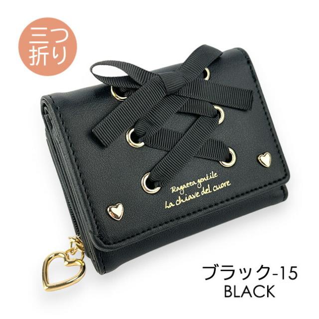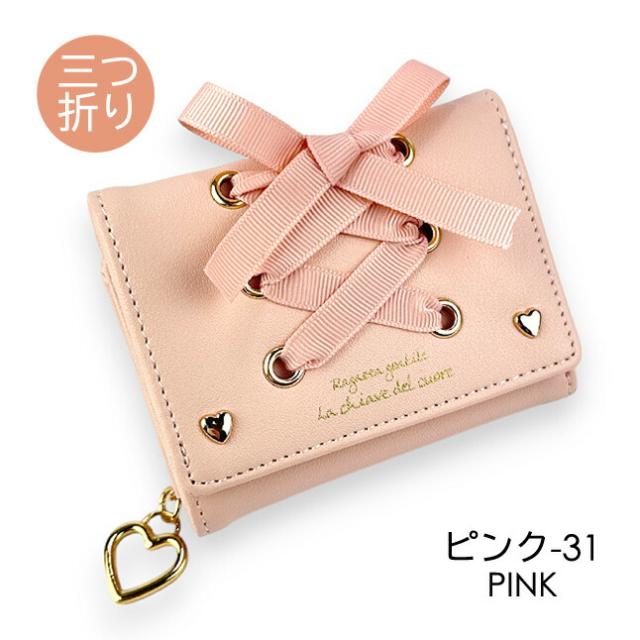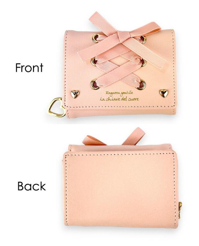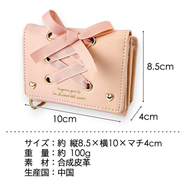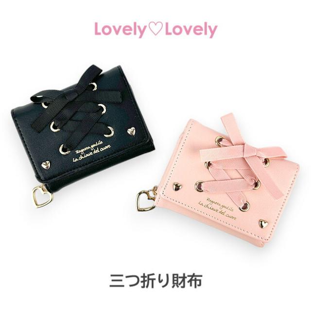 キッズ 財布 女の子 三つ折り財布 ll-1015 Lovely Lovely あみあげりぼん 三つ折り財布 パスケース付き ミニ財布 コンパクト財布 かわいい おしゃれ レースアップ ハートリング 女の子 女子 ガールズ 小学生 中学生 小学校 低学年 高学年 旅行 修学旅行 通学 通塾