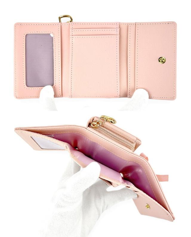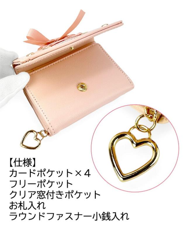 あみあげリボンがゴージャスでガーリーな三つ折り財布。