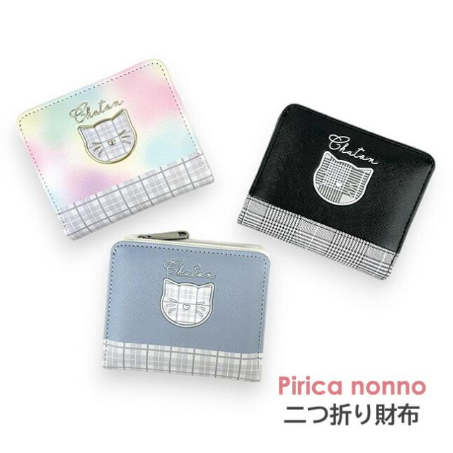 キッズ 財布 女の子 may-104 Pirica nonno ピリカノンノ アウトラインネコシリーズ L字ファスナー二つ折り財布 コンパクト財布 お財布 かわいい キッズ財布 ネコフェイス タータンチェック グレンチェック ジュニア 子供 小学生 中学生 女の子 女子 女児 ガールズ 通学