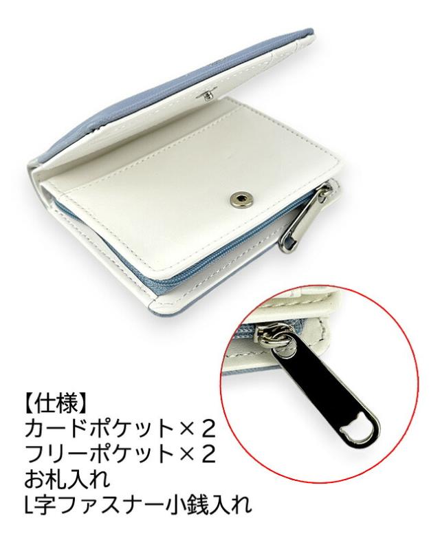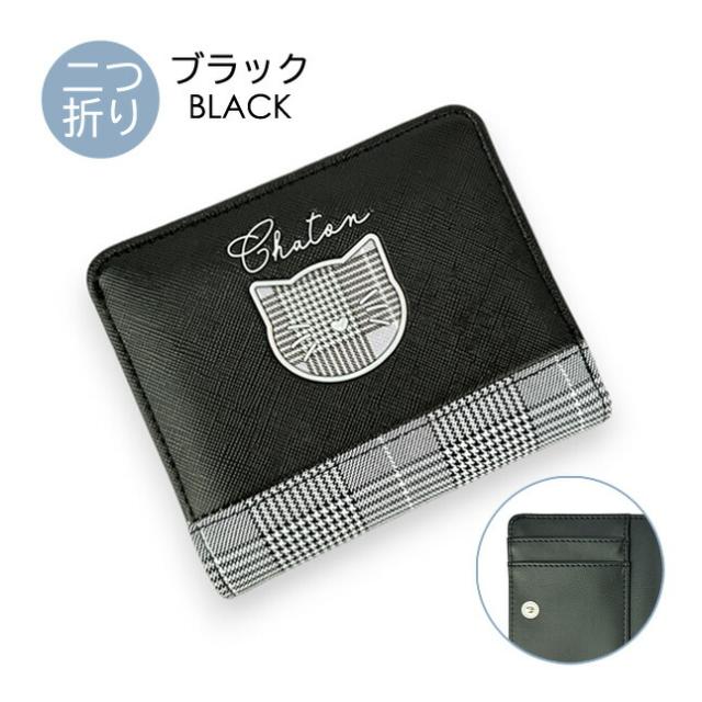 ゴールドやシルバーで縁取りされたねこちゃんがかわいい二つ折り財布。
