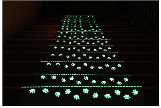 【素材&夜光】太陽光や蛍光灯の光を当てることで、暗くなっても蓄光の足跡とラインが光ります。