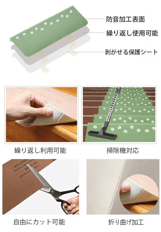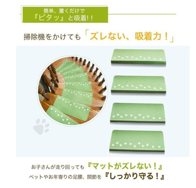 【防音バッチリ】厚手でしっかりした生地を使用しているので防音効果が抜群、いつも気になる足音を軽減できます。階段の上り下りの騒音対策や衝撃も緩和され足腰にも優しいです!また床キズの防止にもなるので新築や賃貸住宅にも優しいです。