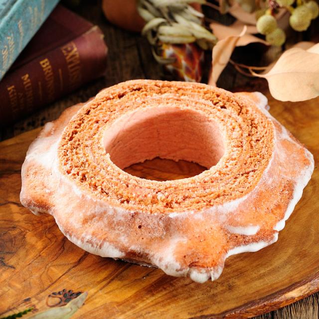 自然な苺の香りと風味が広がるよう、しっかりと焼き上げた伝統的なバウムクーヘン。香ばしさの中にもしっとりとした味わいをお楽しみいただけます。