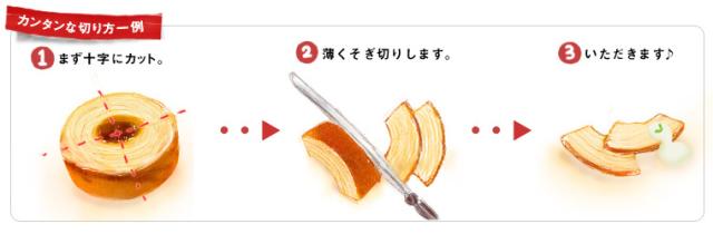 シンプルなままお召し上がりいただく以外にも、少し温めてご自宅でジャムやクリームを添えたり、薄くそぎ切りにしてアイスやフルーツと一緒に容器に入れてオリジナルパフェを作ったり、 オリジナルの食べ方ができるのもバウムクーヘンの魅力のひとつです。