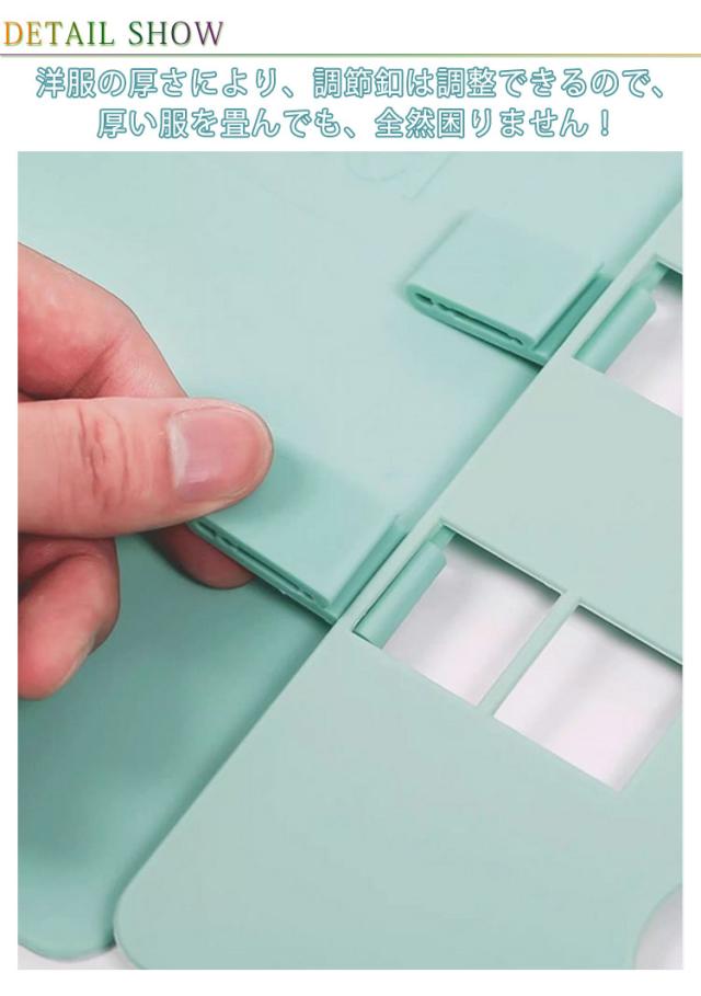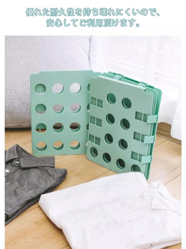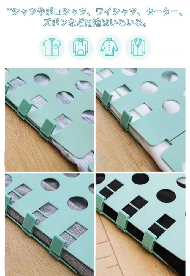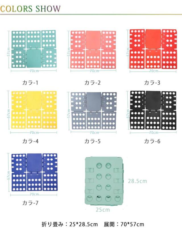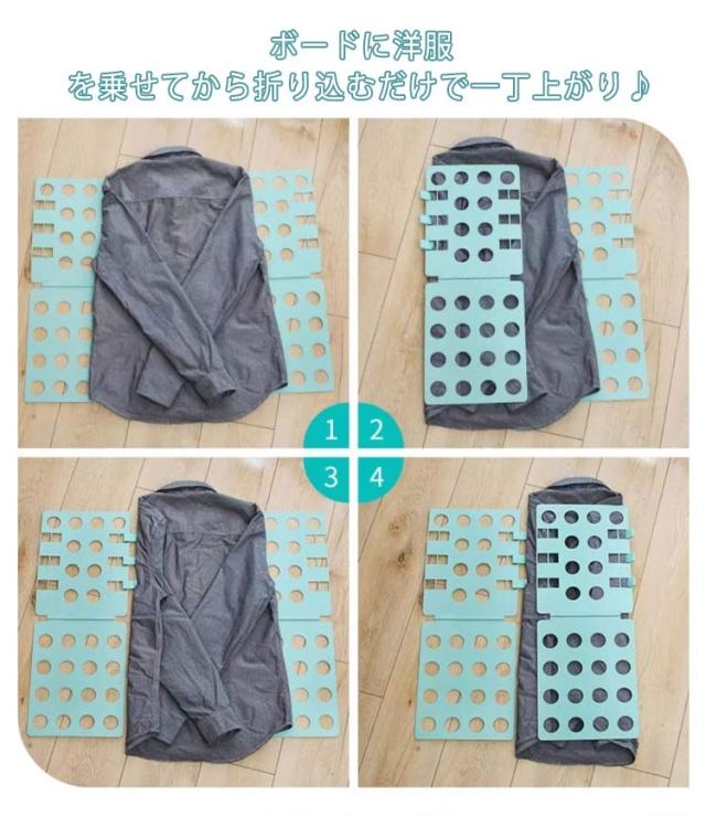 | 洋服を綺麗に畳むことができる洋服たたみボードです。 ボードに洋服を乗せてから折り込むだけで一丁上がり♪ Tシャツやポロシャツ、ワイシャツ、セーター、ズボンなど用途はいろいろ。 優れた耐久性を持ち壊れにくいので、安心してご利用頂けます。 洋服の厚さにより、調節釦は調整できるので、厚い服を畳んでも、全然困りません! 一人暮らしの方やご家族の多い衣類の折り畳みにご活用頂けます。 | |