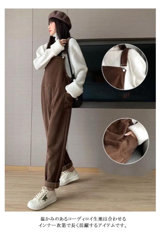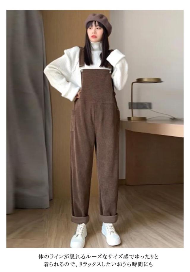 ワイドパンツ パンツ レディース オーバーオール パンツドレス コーデュロイサロペット コーデュロイ風 シンプル OL 無地 着痩せ ロングパンツ 体型カバー ゆったり 秋 きれいめ 春 サロペットパンツ 冬 オールインワン サロペット 秋冬 カジュアル