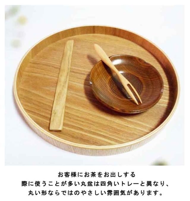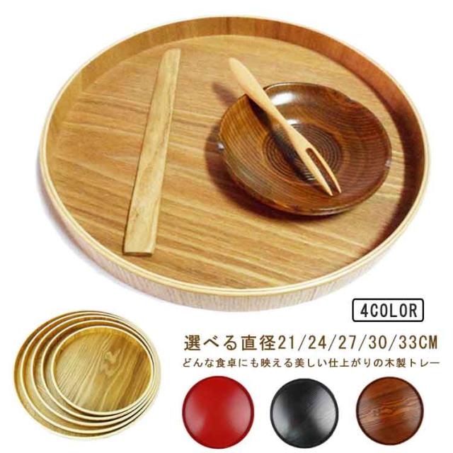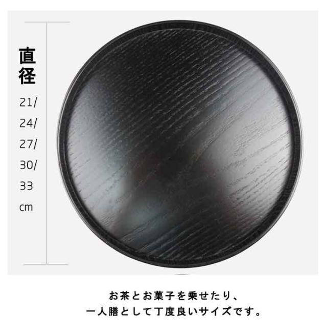 | 選べる直径21/24/27/30/33cm どんな食卓にも映える美しい仕上がりの木製トレー お客様にお茶をお出しする際に使うことが多い丸盆は四角いトレーと異なり、丸い形ならではのやさしい雰囲気があります。 お茶とお菓子を乗せたり、一人膳として丁度良いサイズです。 飽きのこないシンプルなデザインで使いやすいです。 木目が見せるナチュラルな仕上がりが、おしゃれなインテリア雑貨のような趣のある空間を演出してくれます。 | |